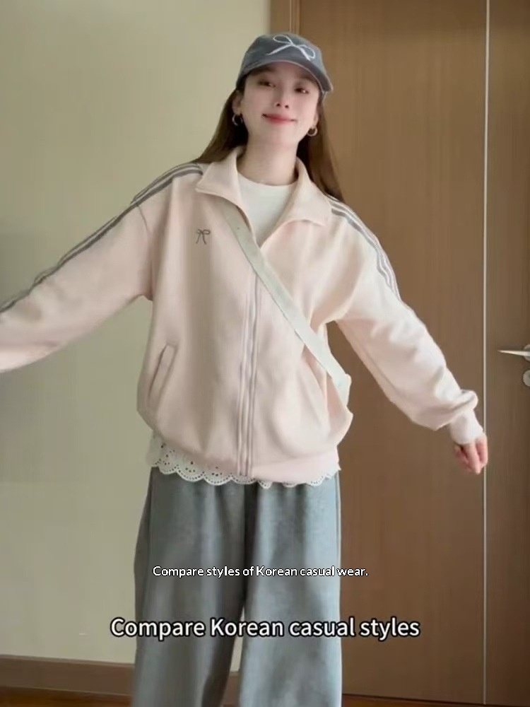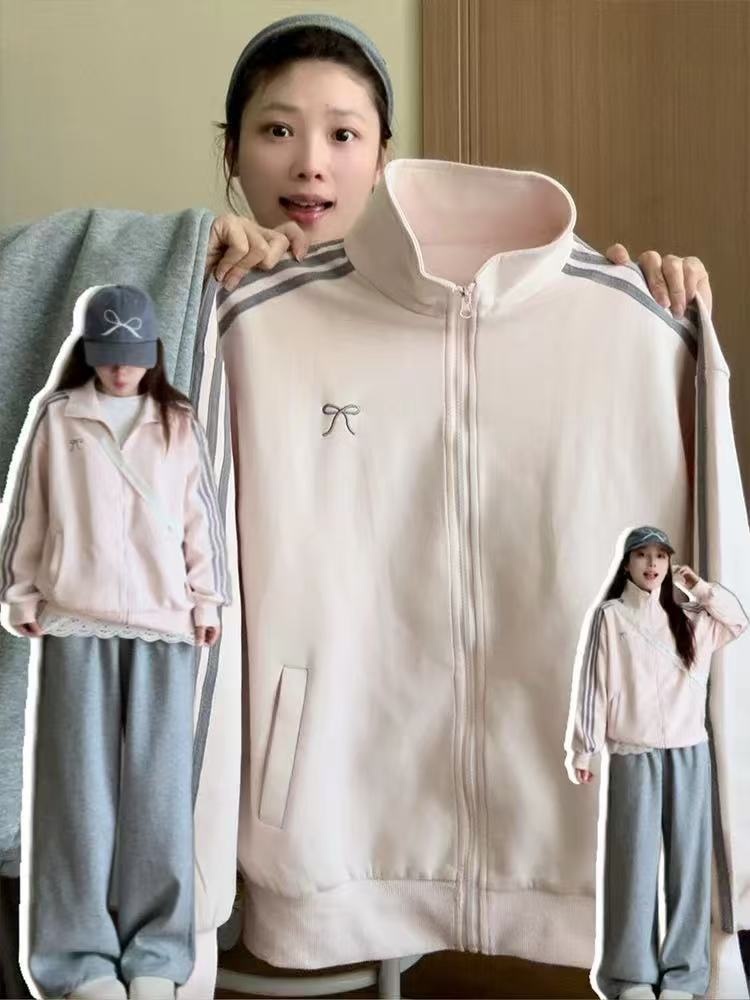 Patchwork Three-stripe Stand-up Collar Hoodie Jacket
