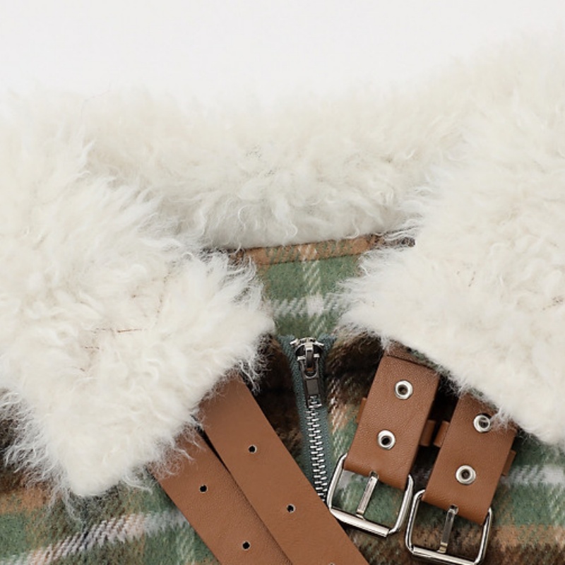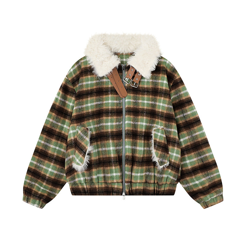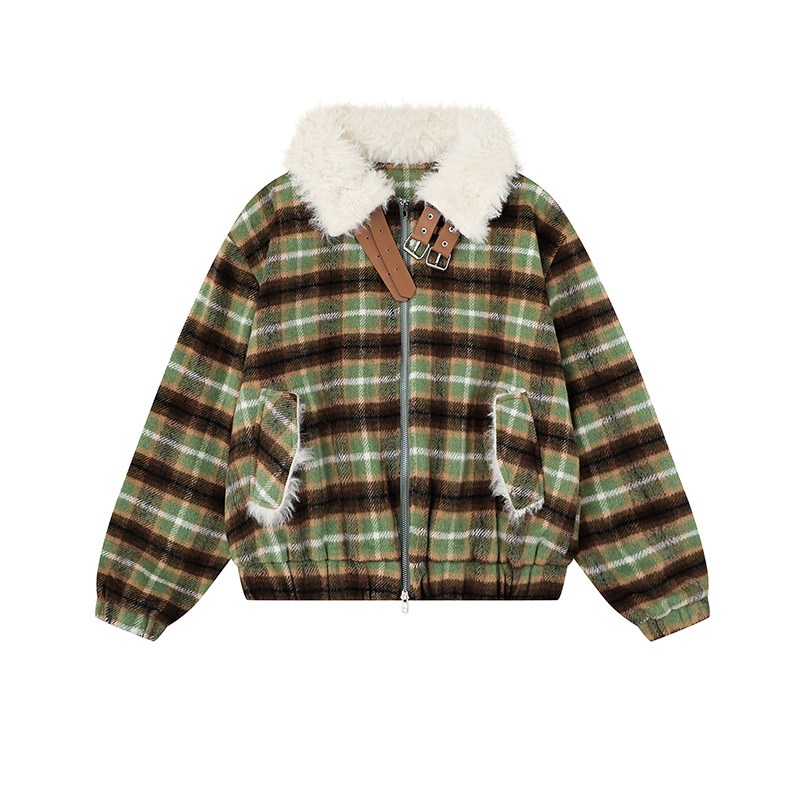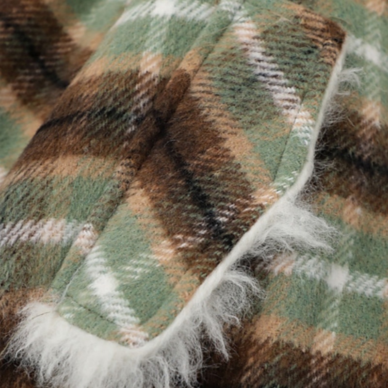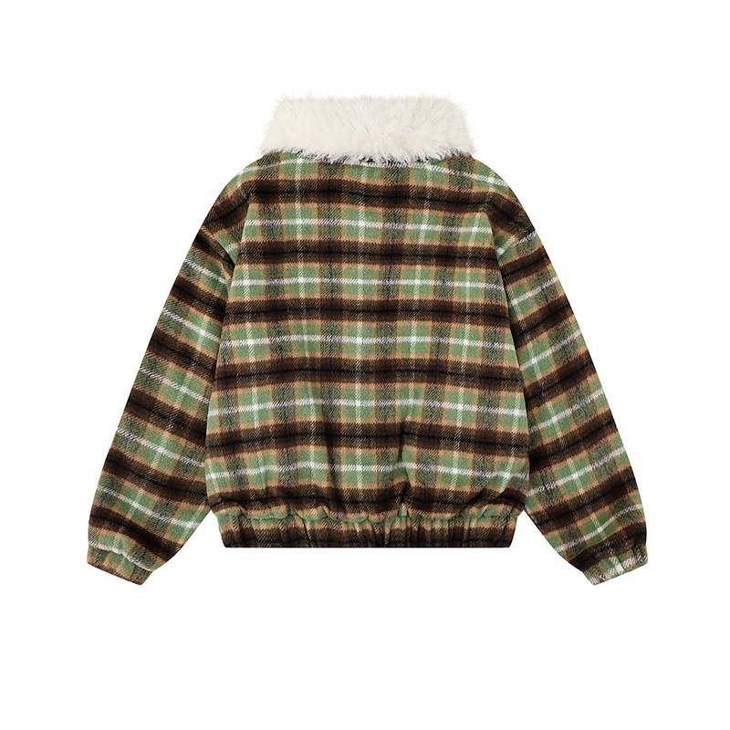 Womens American-Style Retro Color-Block Plaid Wool Coat With A Notch Lapel
