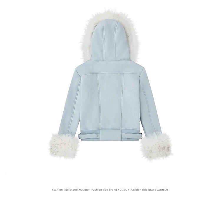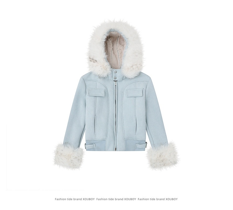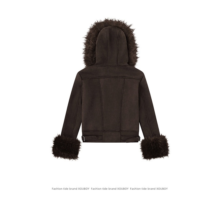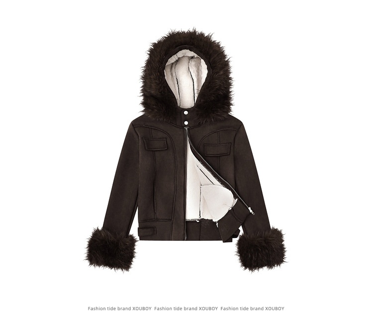 Womens Retro Detachable Big Fur Collar Hooded Padded Coat Slim Fit